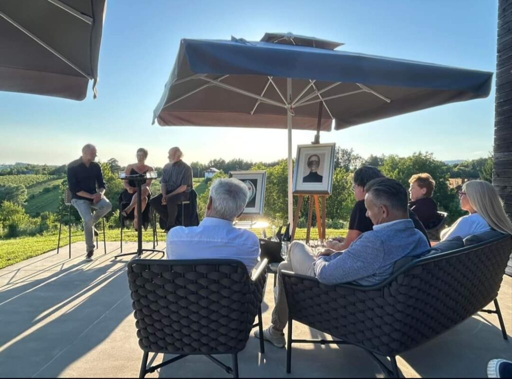 Koncept eventa i sam višesatni razgovor, vodila je Andrea Perkov, ljubiteljica umjetnosti i vina, prijateljica umjetnika i vinara te povela publika u antiku, otkrila mitove Bogova i Ljudi, i one i onih koje umjetnika fasciniraju kroz čitavo stvaralačko razdoblje, žene…od Marije iz Magdale, Salome, Judite. Svaka je od njih imala neodvojivu poveznicu s vinom, svaka je ostavila neizbrisiv trag u povijesti